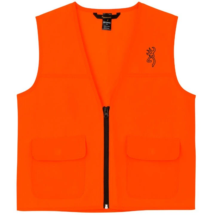 Safety first. The safety orange vest is usually a necessary hunting requirement. Don’t skimp on a cheap vest, pick up a functional vest that is built to last and features large pockets for gear and ammo. Browning® Youth’s durable yet thin safety vest easily slips over your hunting gear without creating bulk.