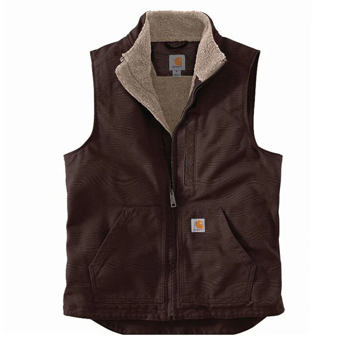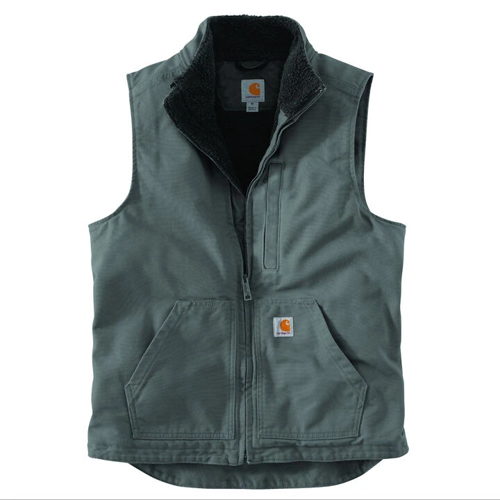 On a cool day, layer up and head out into the field in Carhartt® Men’s Loose Fit Washed Duck Sherpa-Lined Mock-Neck Vest. Made of rugged Cotton Duck, the vest is Sherpa-lined for extra warmth. A zip pocket on the chest and two inside pockets provide storage for the tools of your trade.