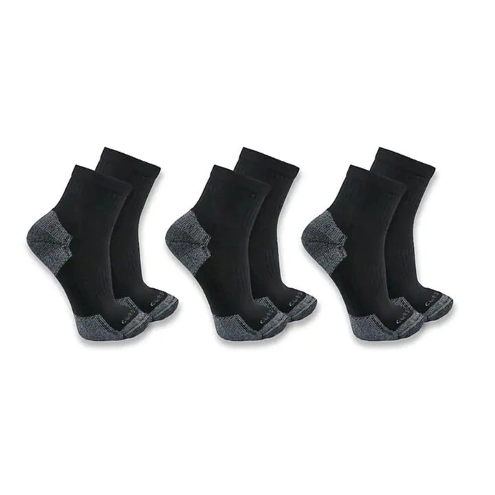 Carhartt® Men’s Cotton Blend Quarter socks are a workday staple that offer breathable comfort on the job. They’re made of a soft Cotton blend with a bit of Spandex for a stay-put fit. Reinforcement at the heel and toe provides extra padding in high impact areas.