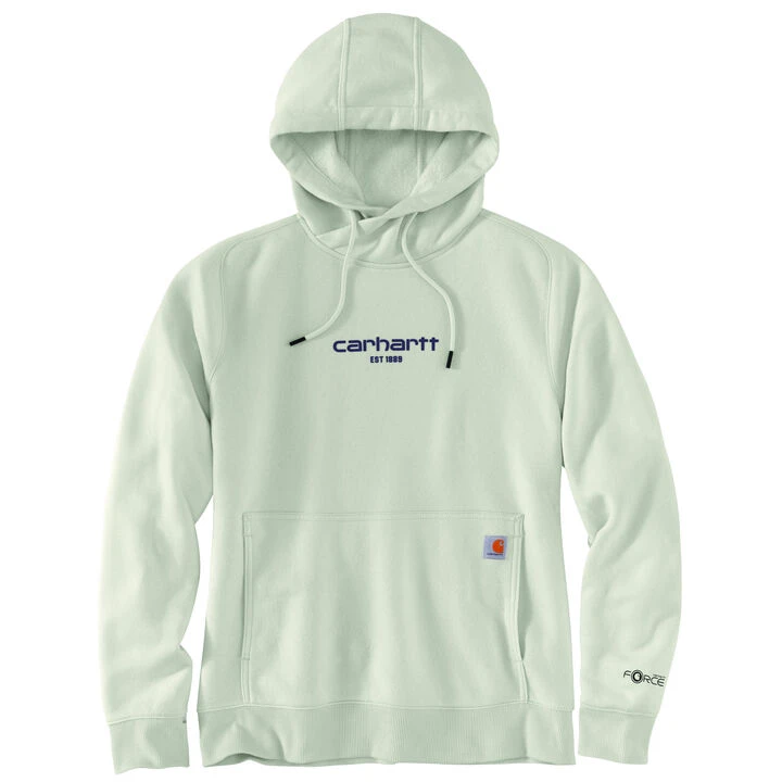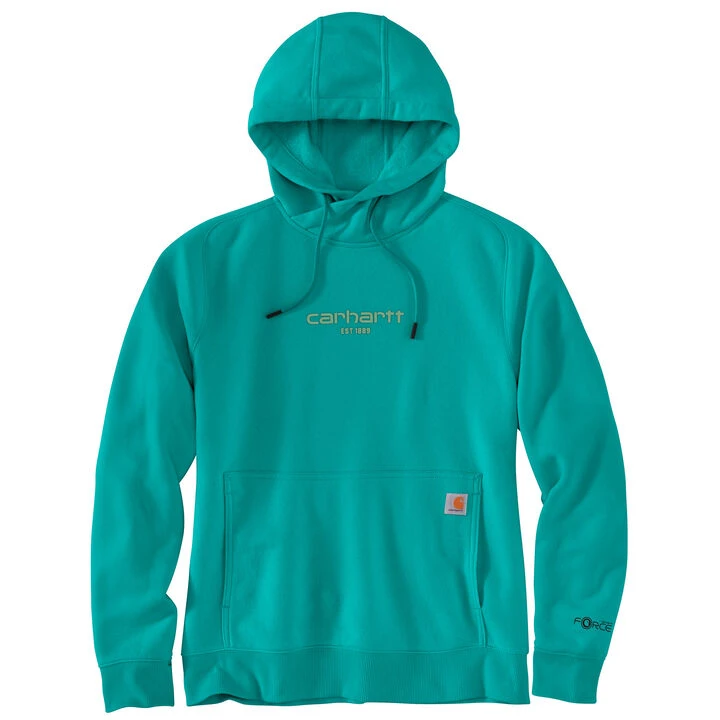 A classic hoodie gets a performance upgrade. Lightweight and versatile, this Carhartt® Women’s hooded sweatshirt is made of temperature regulating fabric that fights sweat and dries quickly. An inner pocket in the front pouch stores your phone. The Relaxed Fit allows for easy movement.