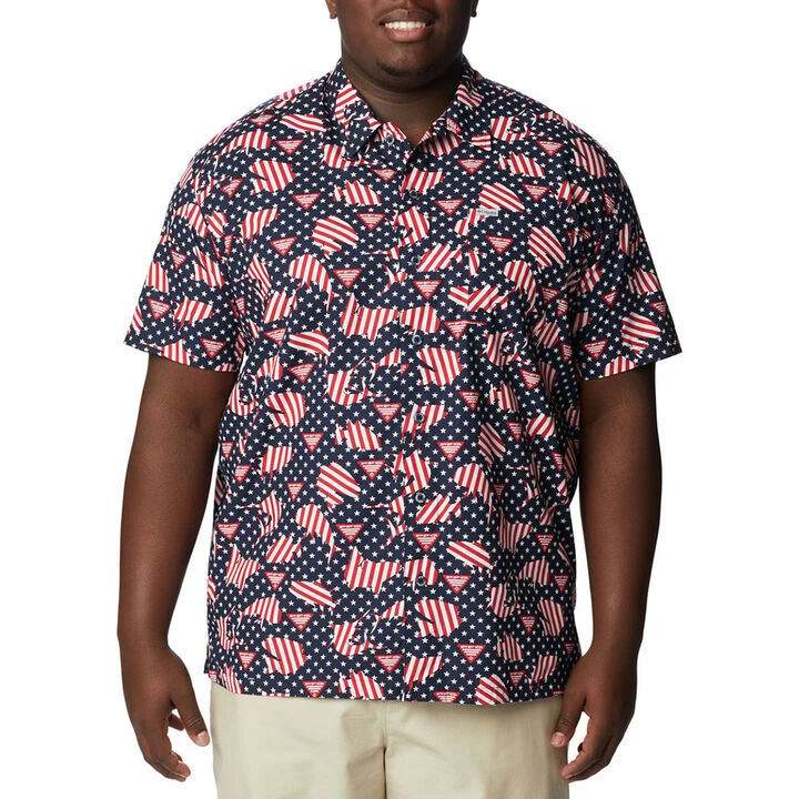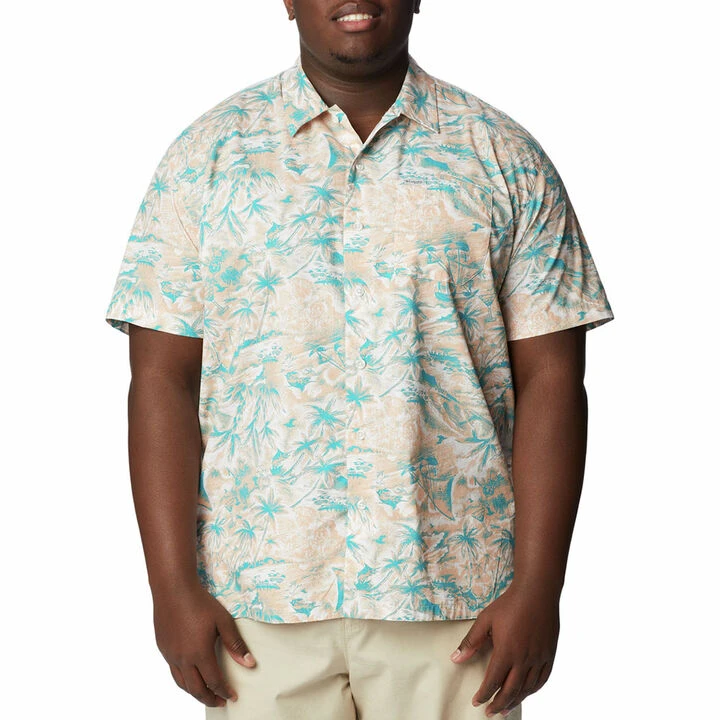 Columbia® Men’s Big & Tall PFG Trollers Best™ Short-Sleeve Shirt keeps you cool. Add this printed button-up with a hidden back vent to your hot-weather wardrobe.
