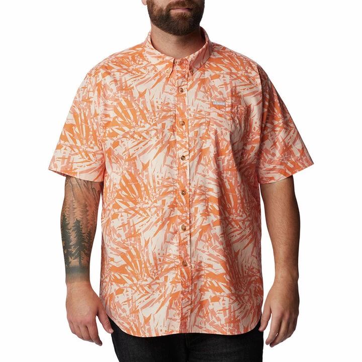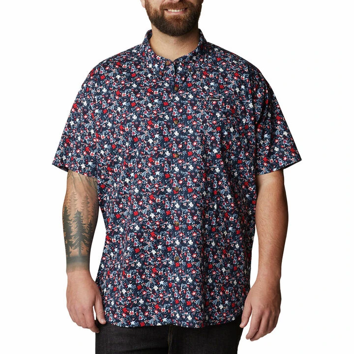 At the office or on the trail, you’ll be comfortable in Columbia® Men’s Big & Tall Rapid Riversâ„¢ vibrant printed Cotton short-sleeve button-up with a classic silhouette.