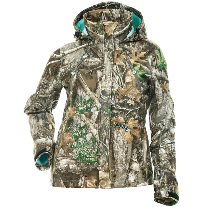 One of DSG Outerwear’s original designs, this jacket features a quiet, micro-tricot outer layer bonded to micro-fleece that has a clothing weight similar to a 200 weight fleece jacket (The aqua inner layer). This creates a wind-proof barrier and added comfort with the soft feeling on the interior of the women’s jacket. This camo soft shell hunting jacket features Agion Active® XL dual-action scent control which works hard to combat odor and neutralize your scent. The Ava 2.0 jacket and pant appear to be most comfortable when worn between temperatures of 40F to 60F. The Ava 2.0 size group is women’s and fits true to size.