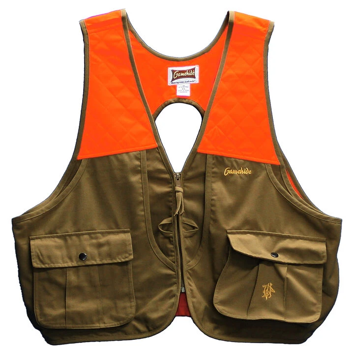 Lightweight like a strap vest, but wears and functions like a Premium Upland vest. Gamehide® Men’s Ultra-Lite Vest is the ultimate warm weather bird vest. The blood-proof game bag can be accessed from front, top or rear. The strategic cut outs maximize airflow and the intelligent design carries the weight of birds and shells comfortably. The large bellowed pockets have a snap closure and can carry a full box of shells. The Gamebird Ultra-Lite Vest is made of SuppleTuff®, the lightweight burr proof fabric. It screams comfort from the moment you put it on and offers freedom to move in every direction, ready for every flushing bird.