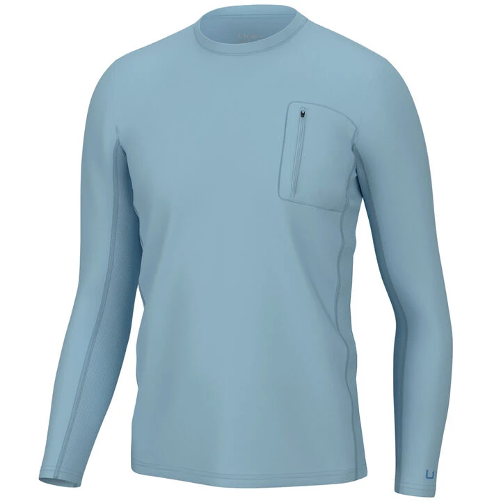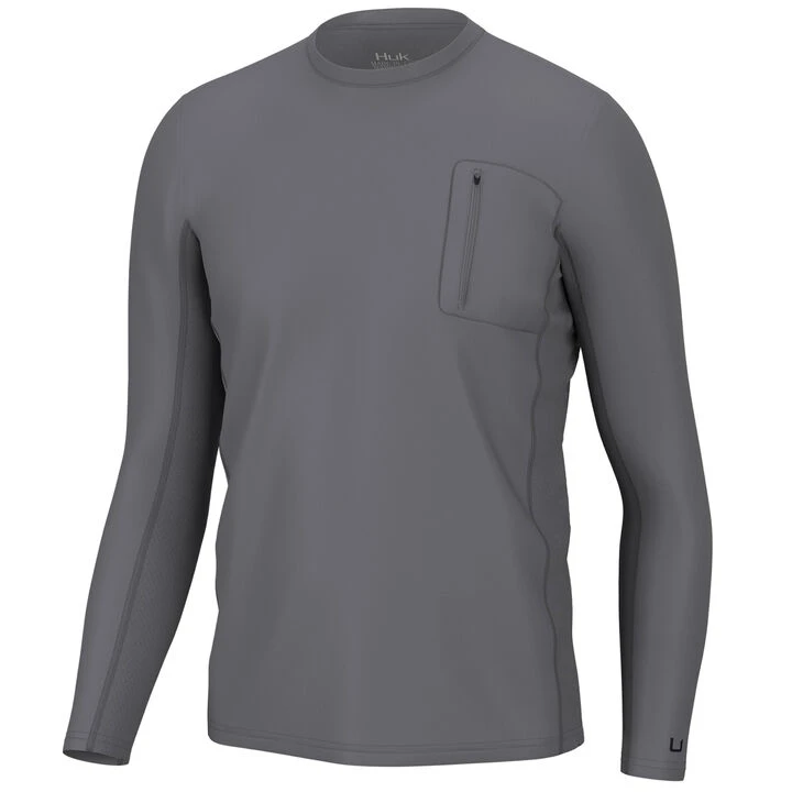 Huk® Men’s Icon X Pocket Long-Sleeve is the most technically advanced performance fishing shirt designed for hardcore anglers. This new silhouette of your favorite shirt includes a front vertical zippered pocket. This breathable material spreads moisture over a larger surface area, creating a rapid drying effect that cools the body after coming into contact with perspiration. The synthetic fibers allow air to pass through the shirt and contain a hydrophobic coating that transports sweat to drier areas, away from the skin.