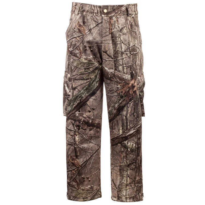 The Huntworth® Men’s Revere Heavyweight Fleece Pant in Hidd’n® are designed to keep you in the hunt as temperatures drop and the wind picks up. Made in a woodland pattern, the Hidd’n® camo windproof pants are constructed of a triple layer fabric made with a heavily brushed tricot bonded to a thick berber fleece and a windproof breathable film that stands up to winter’s bitter cold.