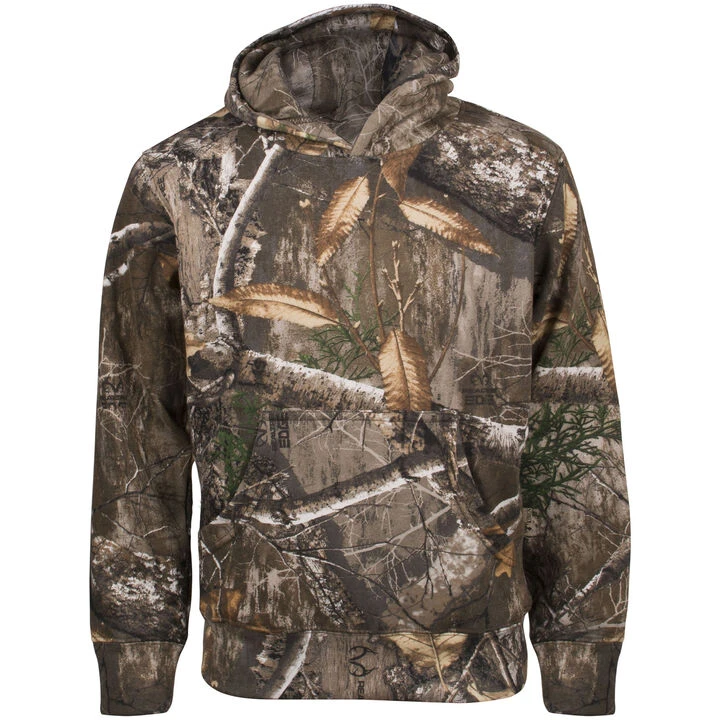 This Kings Camo® Boy’s Youth Hoodie is a 60/40 cotton poly blend hooded sweatshirt is as comfortable as it is durable. It includes a kangaroo front pocket and camo cuff sleeve and waist.